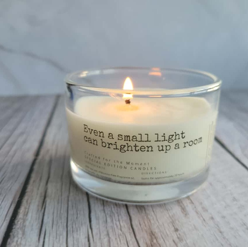 Like all of my candles, it comes with a simple light-filled sentence - a small reminder of what we often forget: